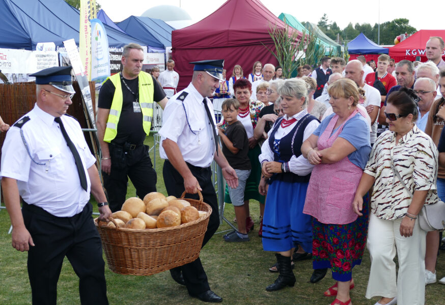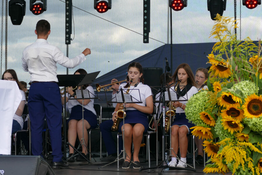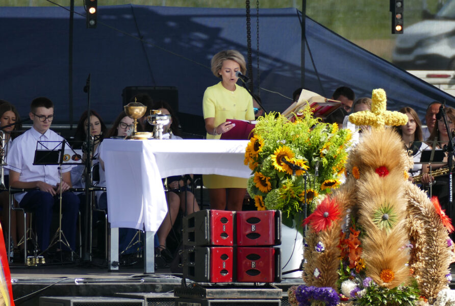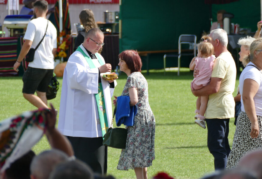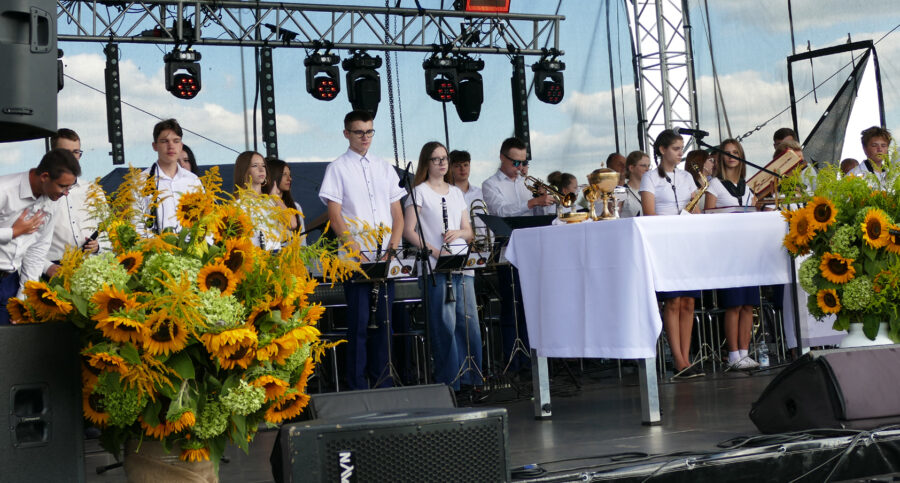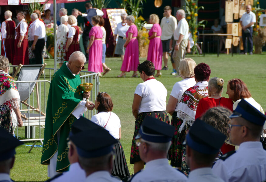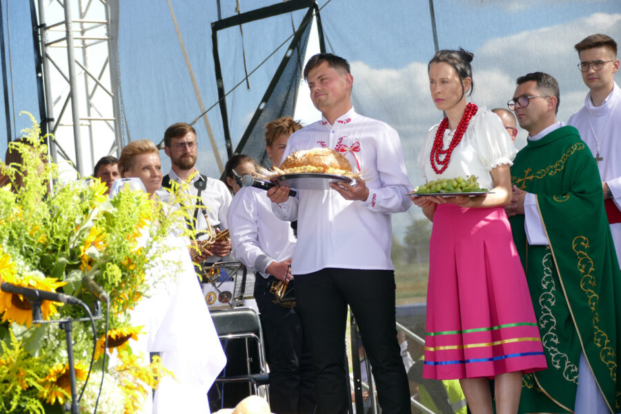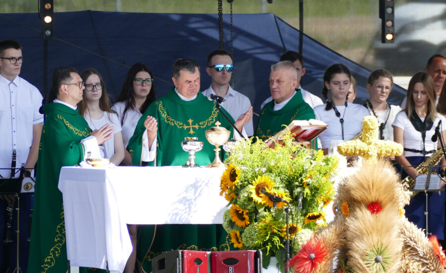 Homilię wygłosił wikariusz parafii Chełmce – ks. Bartosz Sikora. Pieśni liturgiczne wykonała Orkiestra Dęta Strawczyn pod batutą kapelmistrza Kamila Zapały. Na Eucharystię przyniesione zostały wieńce dożynkowe przygotowane przez mieszkańców Oblęgora, Rudy Strawczyńskiej oraz Stowarzyszenie „Przyszłość Strawczynka”. Tradycyjnie, zostały one „obśpiewane” – tym razem przez przedstawicieli Rudy Strawczyńskiej. Po Mszy Św. wszyscy obecni mogli się poczęstować symbolicznymi bochenkami chleba.